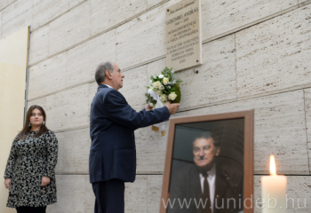 Görömbei András (1945-2013) irodalomtörténész tiszteletére avatott emléktáblát Debrecen város és a Debreceni Egyetem kedden a Kölcsey Központban. A létesítmény bálterme is a professzor nevét viseli ezentúl.
