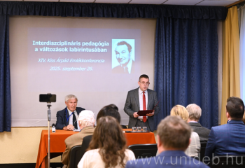 Interdiszciplináris pedagógia a változások labirintusában címmel rendezte az idei Kiss Árpád Emlékkonferenciát a Debreceni Egyetem (DE) Bölcsészettudományi Kar (BTK) Nevelés- és Művelődéstudományi Intézete, a Magyar Tudományos Akadémia (MTA) Pedagógiai Bizottsága és az MTA Debreceni Akadémiai Bizottság (DAB) Nevelés-, Művelődéstudományi és Pszichológiai Szakbizottsága. Az eseményen jubileumi kötettel köszöntötték az intézet oktatóját, Buda András adjunktust, a tanácskozás szervezőjét.